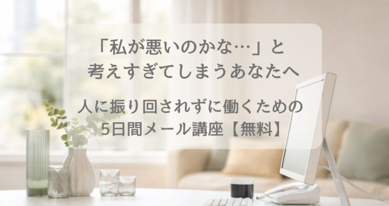 「人に振り回されず、自信を持って働ける私になる」この5日間で、そのための小さなヒントを、私自身の体験を交えながらお届けします。
